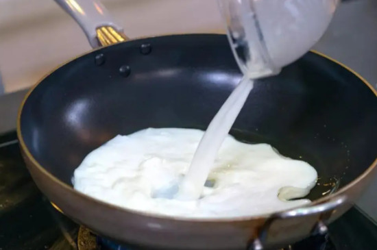 选择牛奶时可根据个人喜好来选择,喜欢奶味浓一点的可以使用全脂牛奶。牛奶入锅中先以大火煮开,后转小火再煮上一会儿。煮的过程中牛奶容易溢出,需要有人在边上看顾。